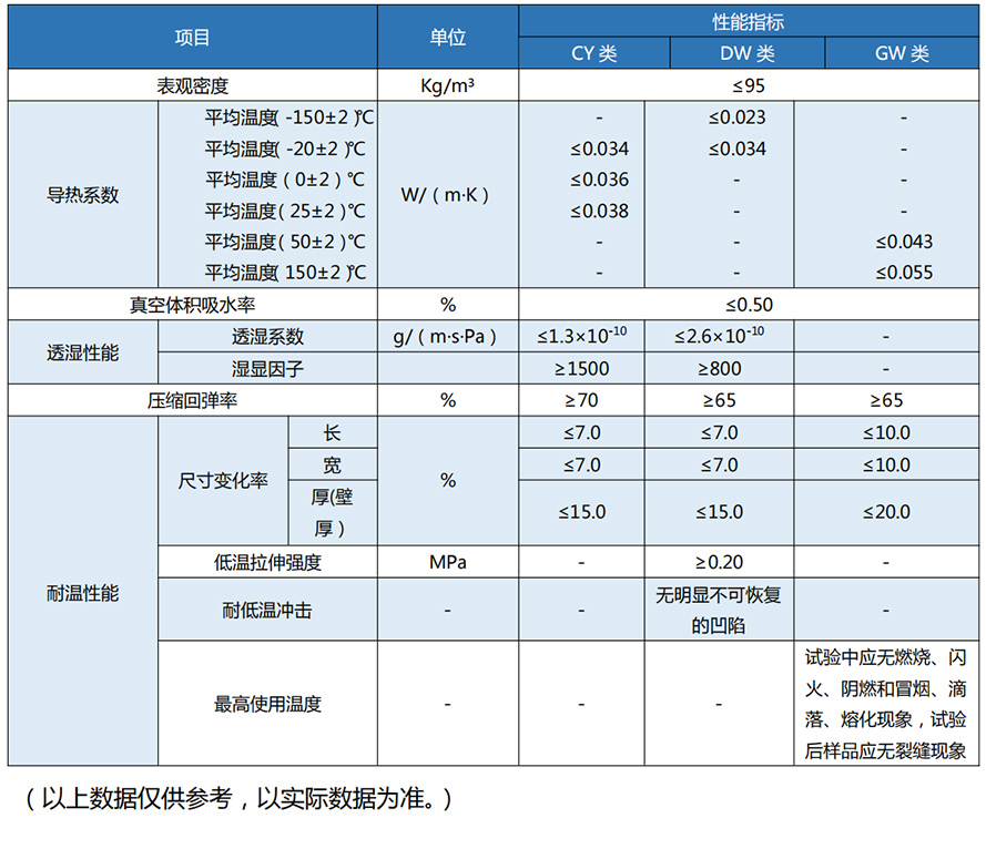 密度:40*80kg/m³;导热系数:0℃时≤0.03w/m.k ;使用温度:-40℃至 105℃